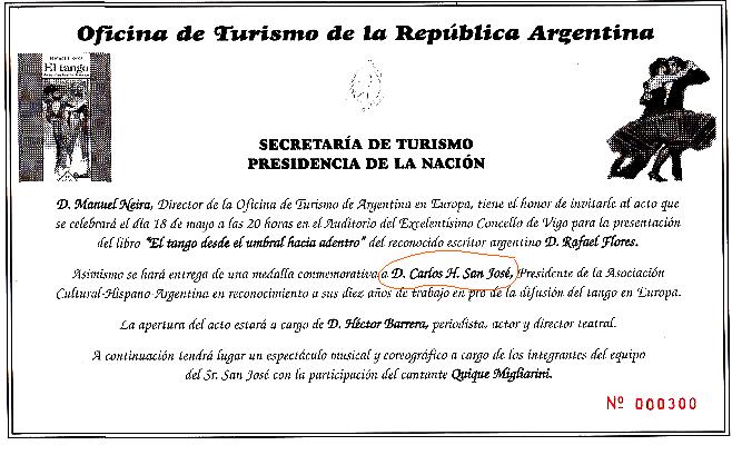 1999 -* Viaje a Buenos Aires, actuando en EL CENTRO GALLEGO, CENTRO DE LA